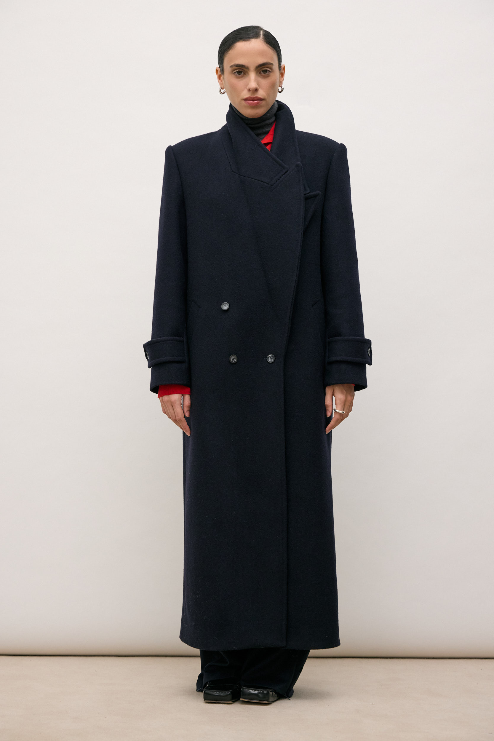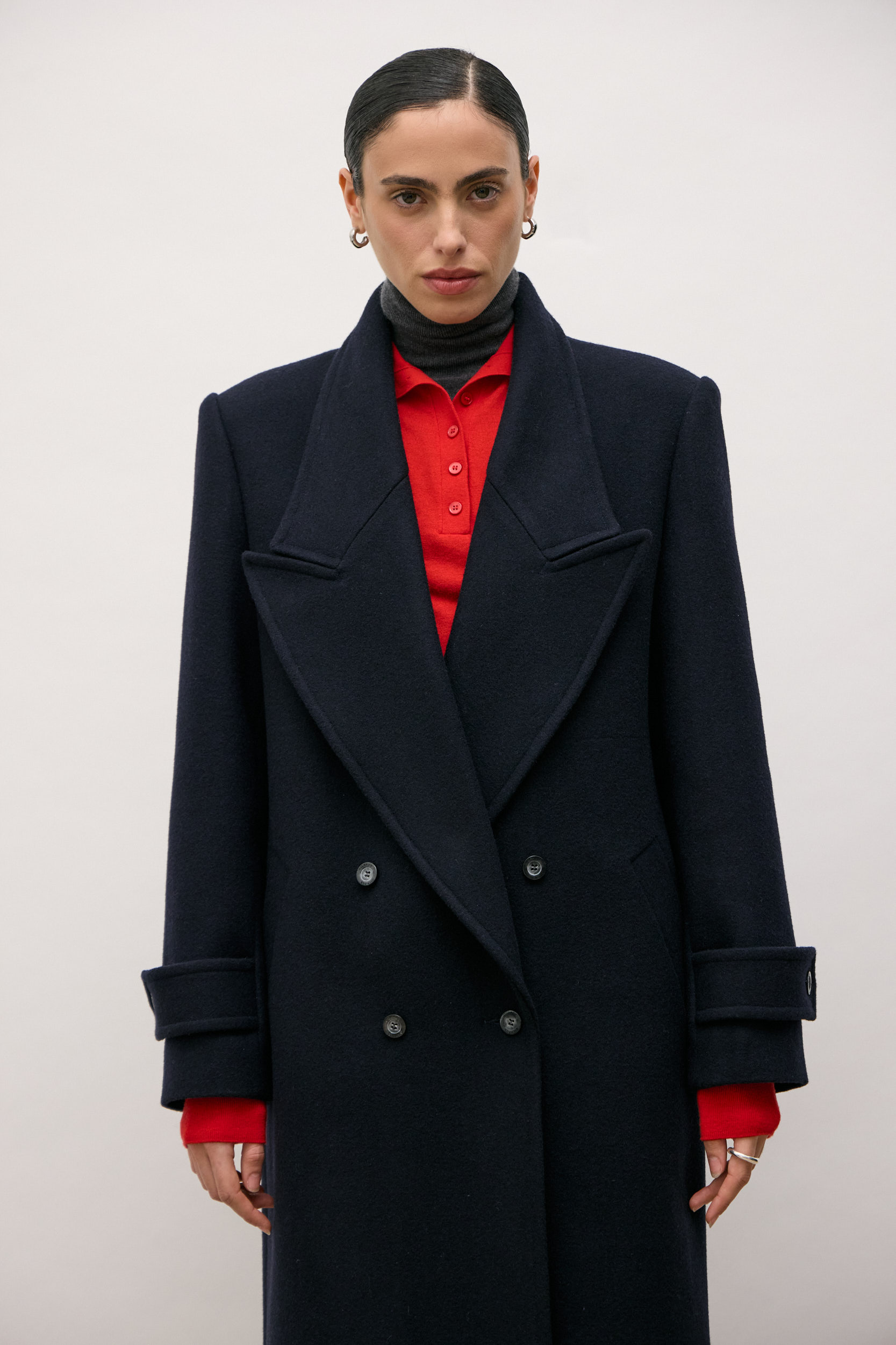 Double-breasted four-button closure