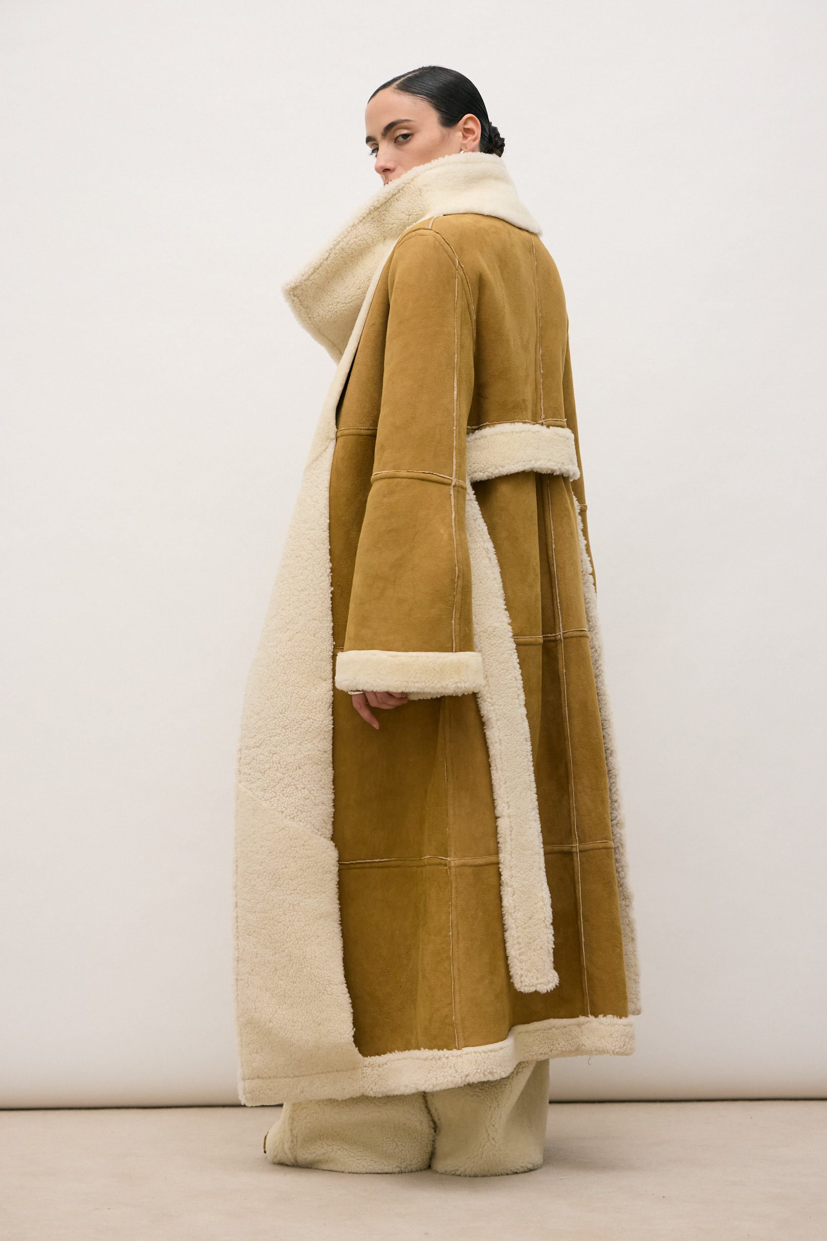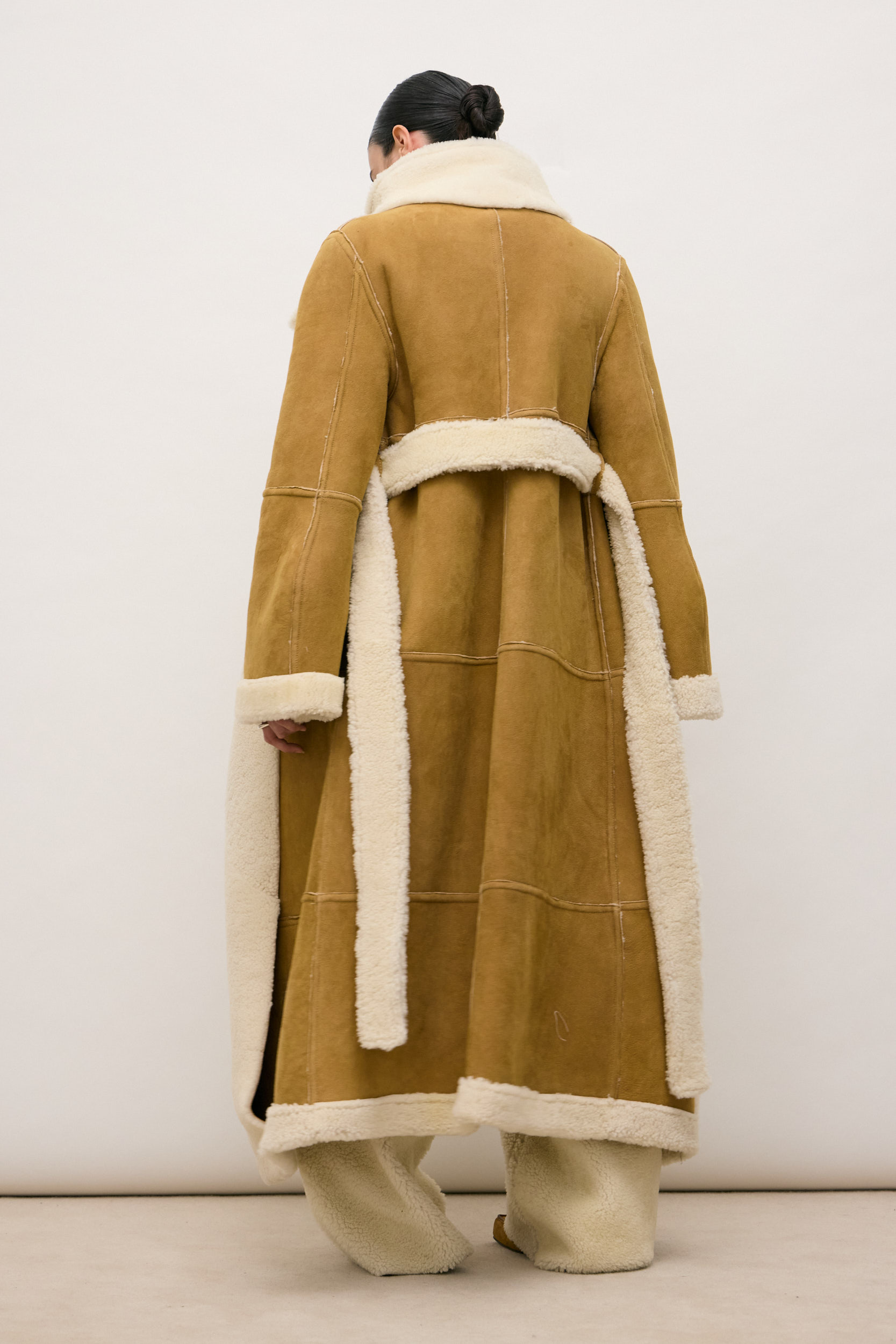 Suede exterior, natural wool interior
